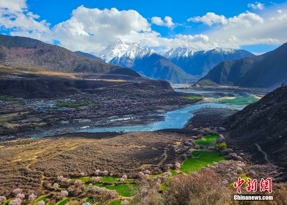 4月1日,西藏林芝市米林市境內(nei) 的南迦巴瓦峰下,桃花盛開,吸引了眾(zhong) 多遊客前來遊玩。南迦巴瓦峰被譽為(wei) “眾(zhong) 山之父”,海拔7782米,其山頂終年積雪,而山腳下則是鬱鬱蔥蔥的樹木和盛開的桃花,形成了一幅獨特的垂直自然景觀。