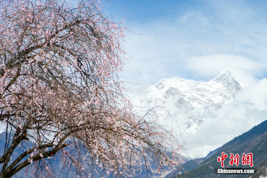 圖為(wei) 桃花掩映下的南迦巴瓦峰。中新社記者 貢嘎來鬆 攝