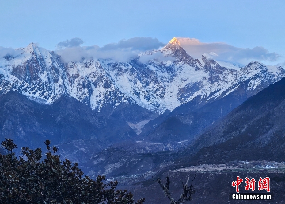 圖為(wei) 南迦巴瓦峰顯露出“日照金山”的美景。中新社記者 貢嘎來鬆 攝