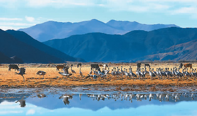 眼下,位於(yu) 雅魯藏布江中遊河穀黑頸鶴國家級自然保護區內(nei) 的西藏自治區拉薩市林周縣虎頭山水庫漸漸喧鬧起來,我們(men) 在此越冬的小夥(huo) 伴開始春季遷徙,飛往色林錯黑頸鶴國家級自然保護區、羌塘國家級自然保護區以及甘肅、青海等地。