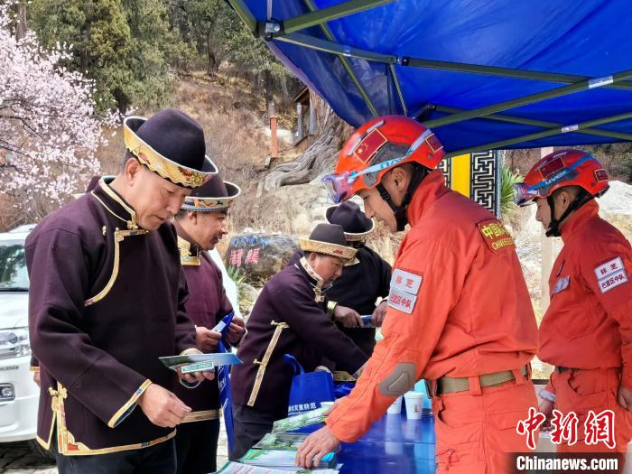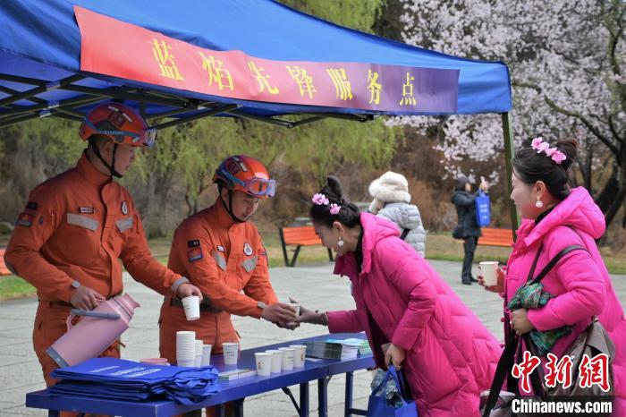 圖為(wei) 消防員正在開展防火宣傳(chuan) 知識普及。西繞拉翁 攝