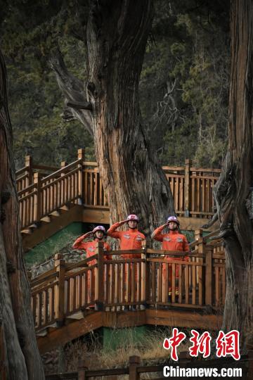 圖為(wei) 消防員守護千年柏樹。西繞拉翁 攝