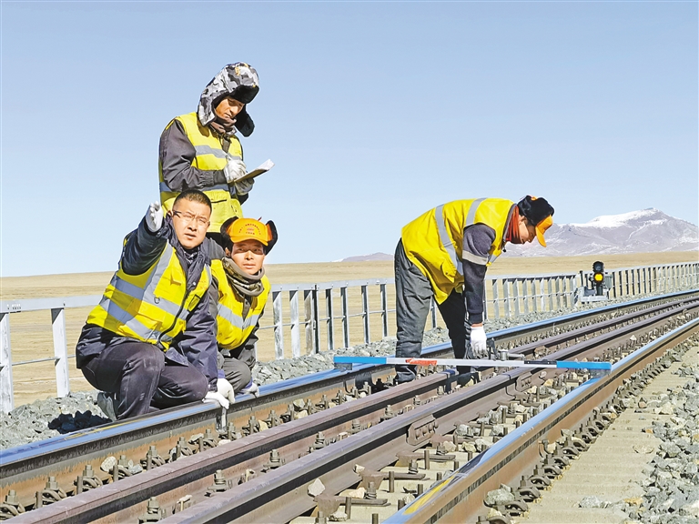 在他的帶領下,安多車間逐步形成了“動態與(yu) 靜態檢測結合分析、線路設備精準維修、道岔設備精細維修、大修與(yu) 維修結合開展”的檢修思路。這種新思路的推廣應用,成功地解決(jue) 了凍土路基變化導致線路設備質量無法有效提高的難題,有效地保障了青藏鐵路行車安全。車間管內(nei) 線路設備質量有了明顯提升,一線作業(ye) 生產(chan) 效率也有了顯著提高。