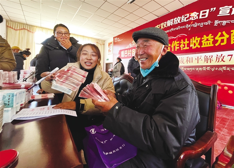 拉薩市城關(guan) 區納金鄉(xiang) 嘎巴村分紅儀(yi) 式現場。 西藏日報記者 旦增蘭(lan) 澤 攝