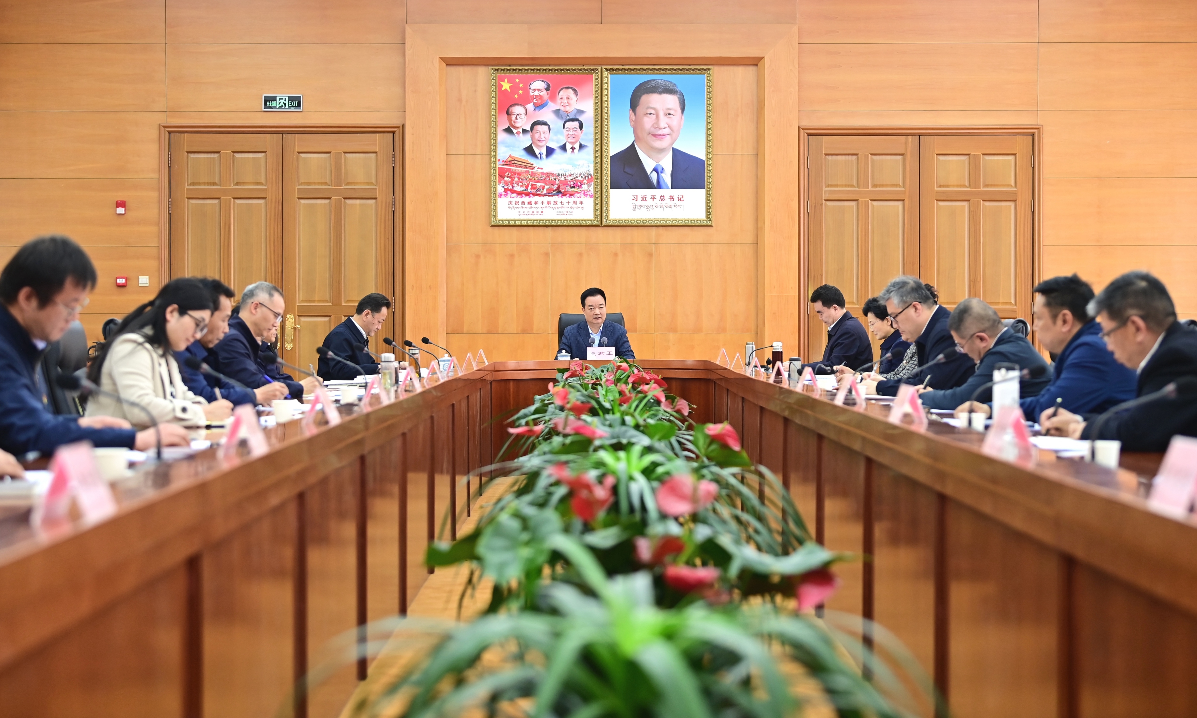 4月8日下午,西藏自治區黨(dang) 委書(shu) 記王君正與(yu) 中央駐藏主要媒體(ti) 負責同誌座談。這是座談會(hui) 現場。記者 旦增西旦 攝