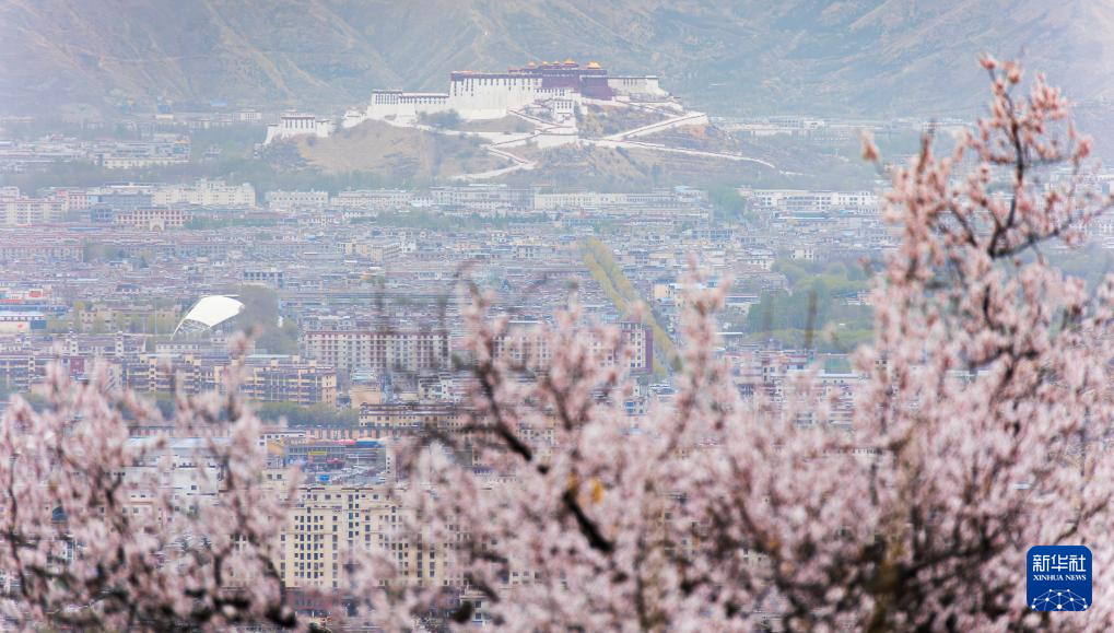 在位於(yu) 拉薩北部的古刹帕邦喀附近拍攝的盛開的桃花,遠處是布達拉宮(4月9日攝)。新華社記者 丁增尼達 攝