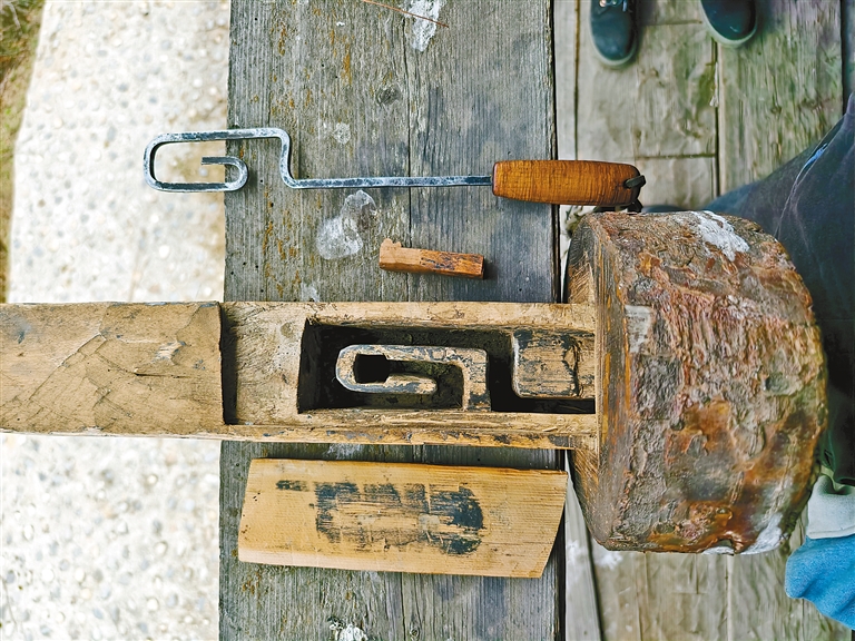 圖為(wei) 八蓋鄉(xiang) 日卡村糧倉(cang) 的木鎖。