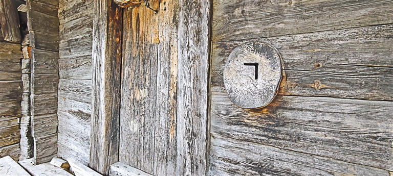 在村民的幫助下,我們(men) 依著鎖孔的形狀,將鑰匙平放進去,沉進鎖芯的孔道中,憑感覺挑起用小木塊做成的栓子,把沉重的木鎖從(cong) 門邊的鎖洞中移除。接著,再用手伸進鎖洞中摸索著移動房門後的木栓,即內(nei) 鎖,多次嚐試後終於(yu) 打開了一間糧倉(cang) !