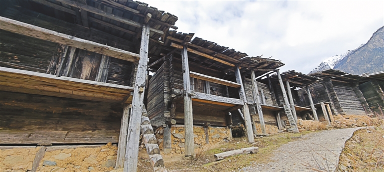 圖為(wei) 八蓋鄉(xiang) 日卡村糧倉(cang) 一角。