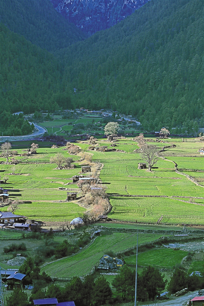 雖然日卡村與(yu) 外界相隔重重深山峽穀,但人口少、資源多,既有農(nong) 田種植的小麥青稞、油菜等,也有牧場放養(yang) 的成群牛羊,還有大片樹林可采集鬆茸、羊肚菌、天麻等,連鬆針都被勤勞的村民收集漚肥,村裏成群放養(yang) 的藏香豬也在證明這裏庭院經濟的豐(feng) 富。