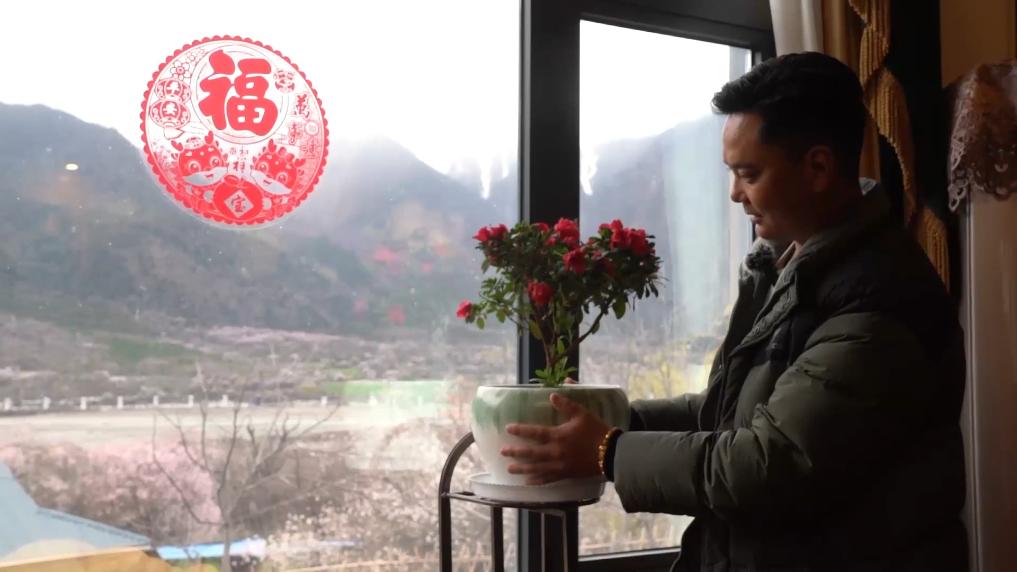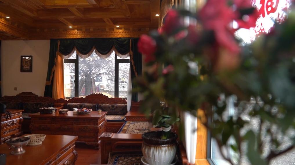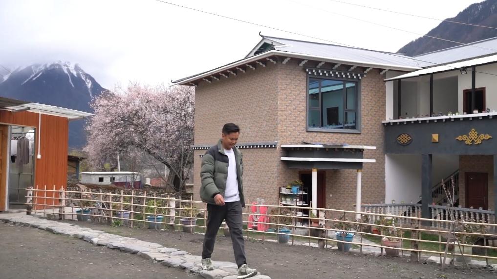 下午4點,林芝市波密縣傾(qing) 多鎮古通村,遠來的遊客入住到村民洛鬆頓珠開辦的民宿。寬敞的客廳裏,藏式家具整齊大氣,窗外古老的桃花樹隨風散落著陣陣花雨。