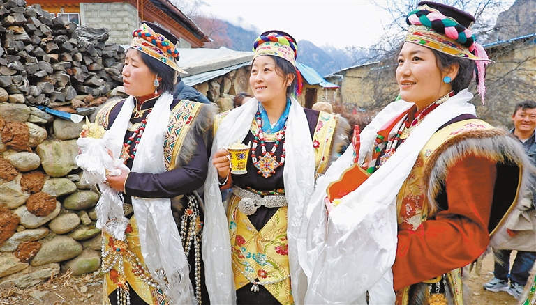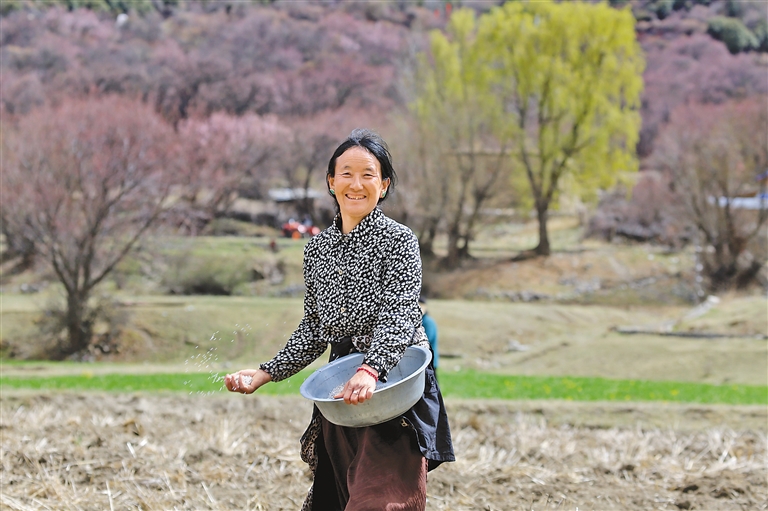 下尼屋的田壟上,35歲的紮西旺姆正在和相熟的村民一起幹農(nong) 活,她是從(cong) 波密縣八蓋鄉(xiang) 嫁到這裏的,已經在尼屋生活了7年。“這裏和八蓋一樣,都以農(nong) 耕為(wei) 主,氣候也差不多,人也很熱情,我和鄰居們(men) 經常一起挖蟲草、采鬆茸、幹農(nong) 活,感覺很幸福!”