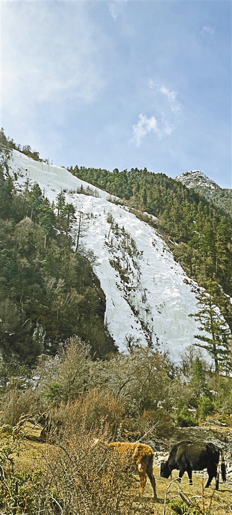 尼屋分為(wei) 上尼屋和下尼屋。沿著尼屋藏布一路向上幾十公裏,就來到上尼屋,夾岸兩(liang) 山草木茂盛、鬆柏蒼翠、牛馬成群。但最讓人驚喜的是依嘎瀑布和依嘎冰川,依嘎瀑布飛瀉直下,流入尼屋藏布,依嘎冰川遠看如婚紗裙擺飄灑山間,近看是明顯的冰川融化形成山體(ti) 斷麵。