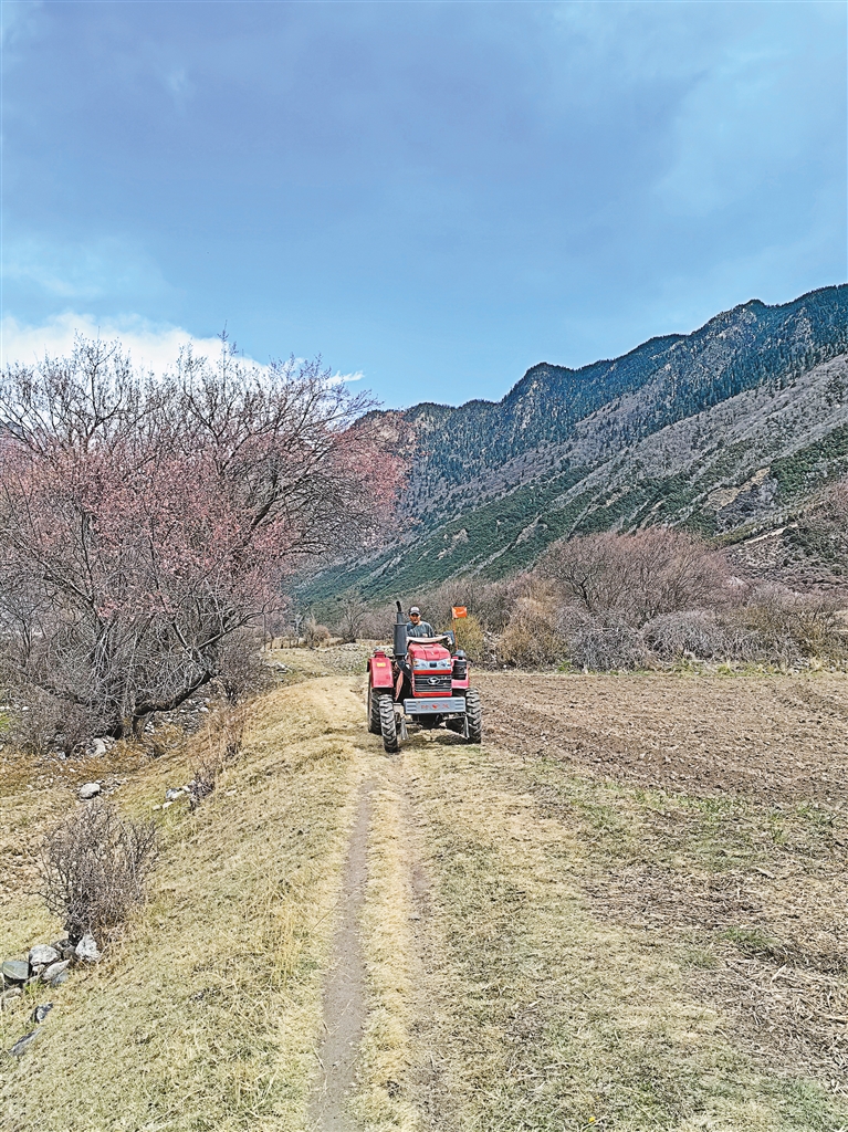 一輛紅色的旋耕機在田地旁停下來,曲美仁增邊換犁頭,邊感歎著科技帶來的便捷:“以前耕地全靠牲畜,費時耗力,現在開著旋耕機就把地耕完了,聽著這機器轟隆隆的聲音,我覺得格外開心,好像在說我們(men) 尼屋的春天特別美,我們(men) 的生活肯定也會(hui) 更幸福!”