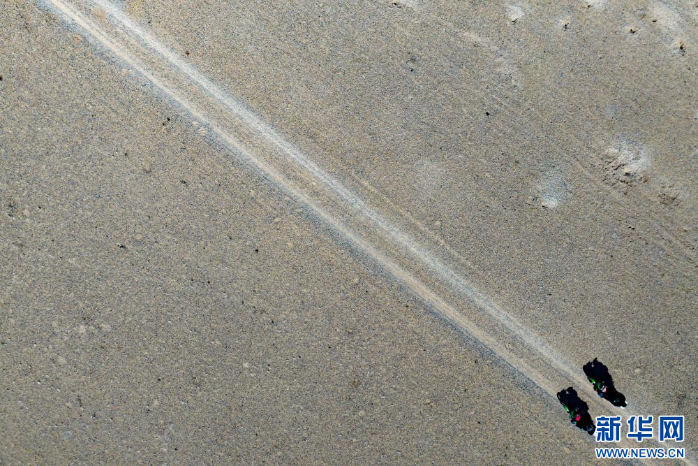4月14日,野保員在色林錯國家級自然保護區進行日常巡邏(無人機照片)。新華網 旦增努布 攝