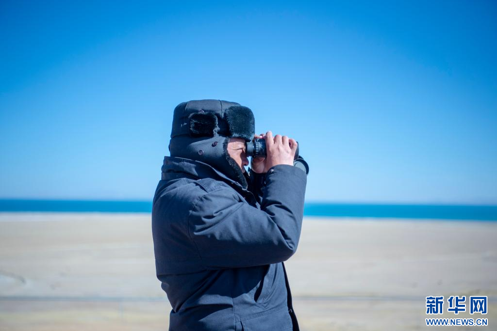 4月14日,野保員次成塔青在色林錯國家級自然保護區巡邏。新華網 旦增努布 攝