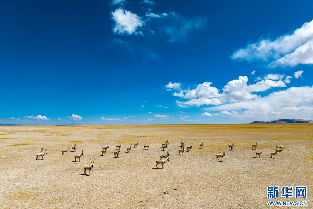4月14日,在色林錯國家級自然保護區拍攝的藏羚羊。新華網 旦增努布 攝