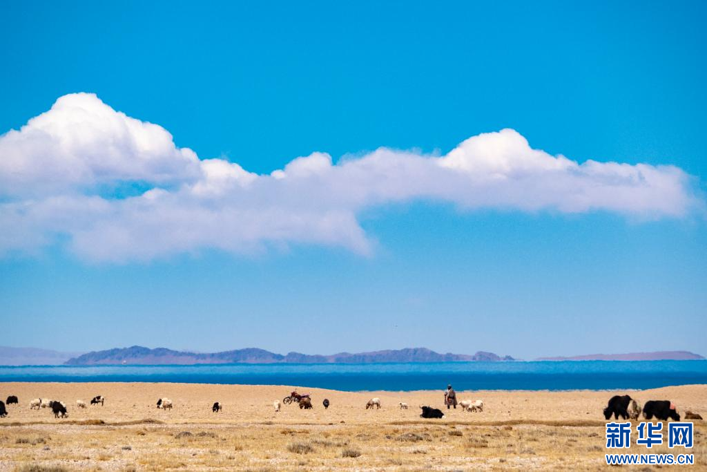 4月14日,在色林錯國家級自然保護區拍攝的放牧人。新華網 旦增努布 攝