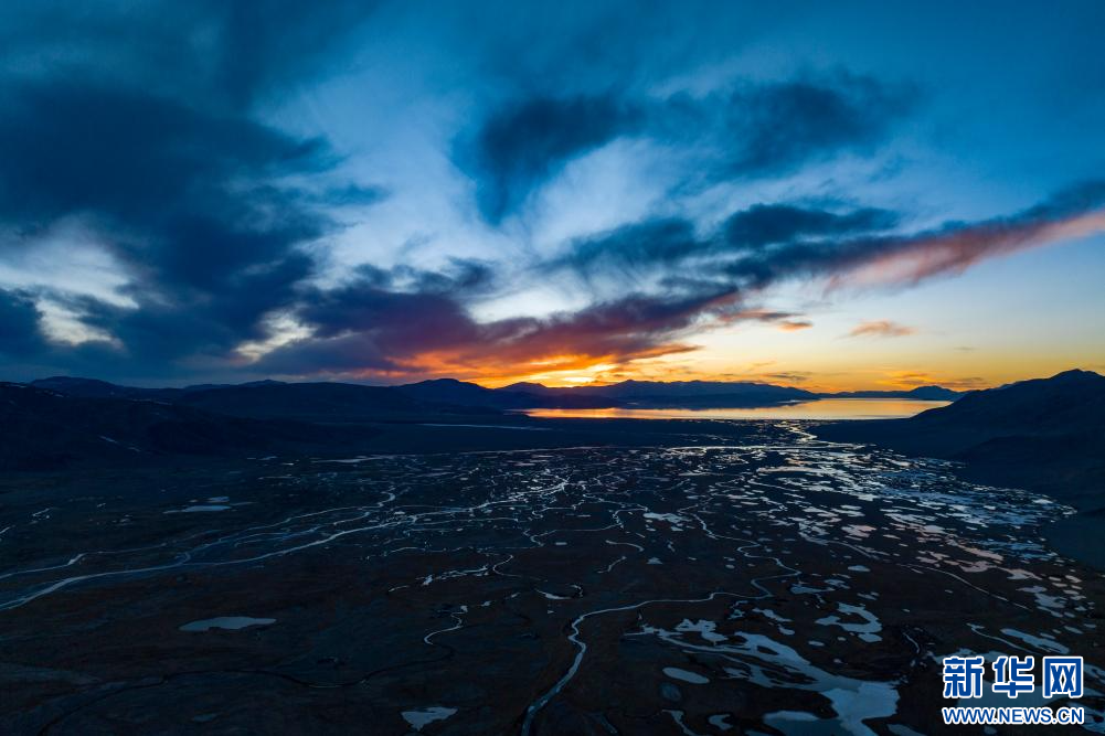 4月14日,傍晚從(cong) 申紮縣縣城拍攝的色林錯景致(無人機照片)。新華網 旦增努布 攝