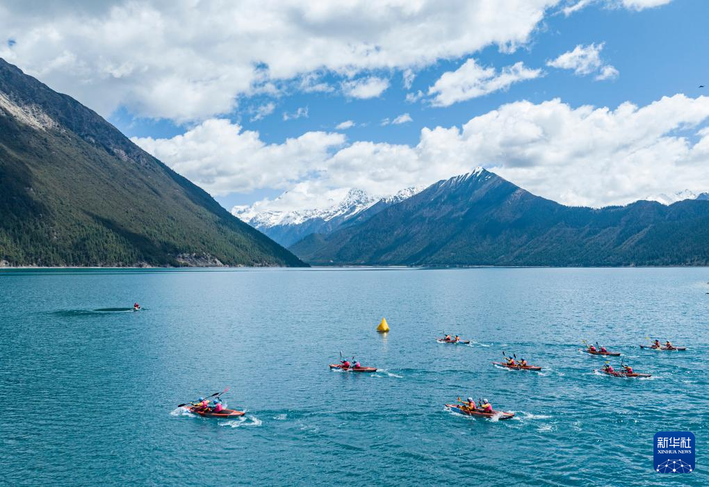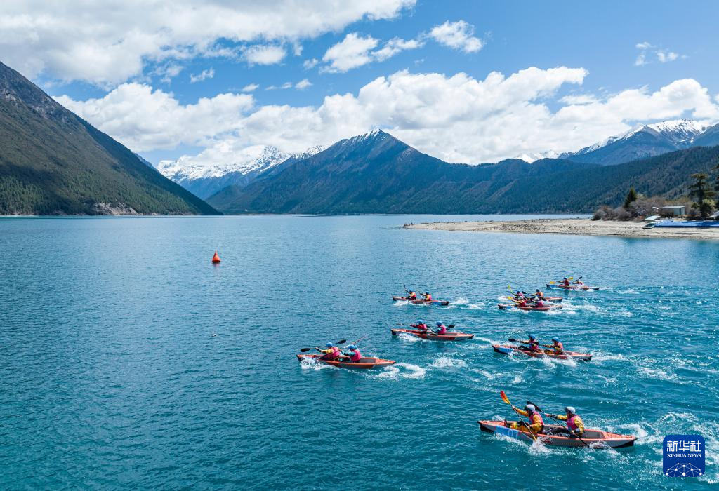 4月20日,2024年巴鬆措國際漂流公開賽在西藏林芝市工布江達縣開賽。30餘(yu) 支隊伍在巴鬆措的湖麵上展開角逐,完成兩(liang) 人漂流艇競速賽和四人漂流艇排位賽的比拚。