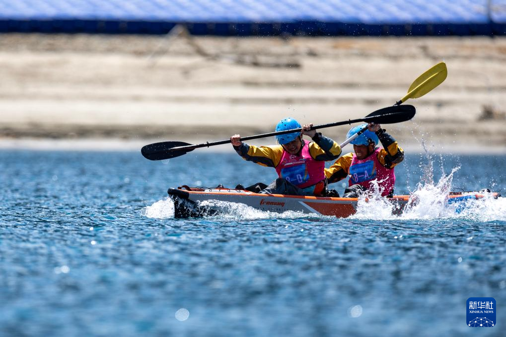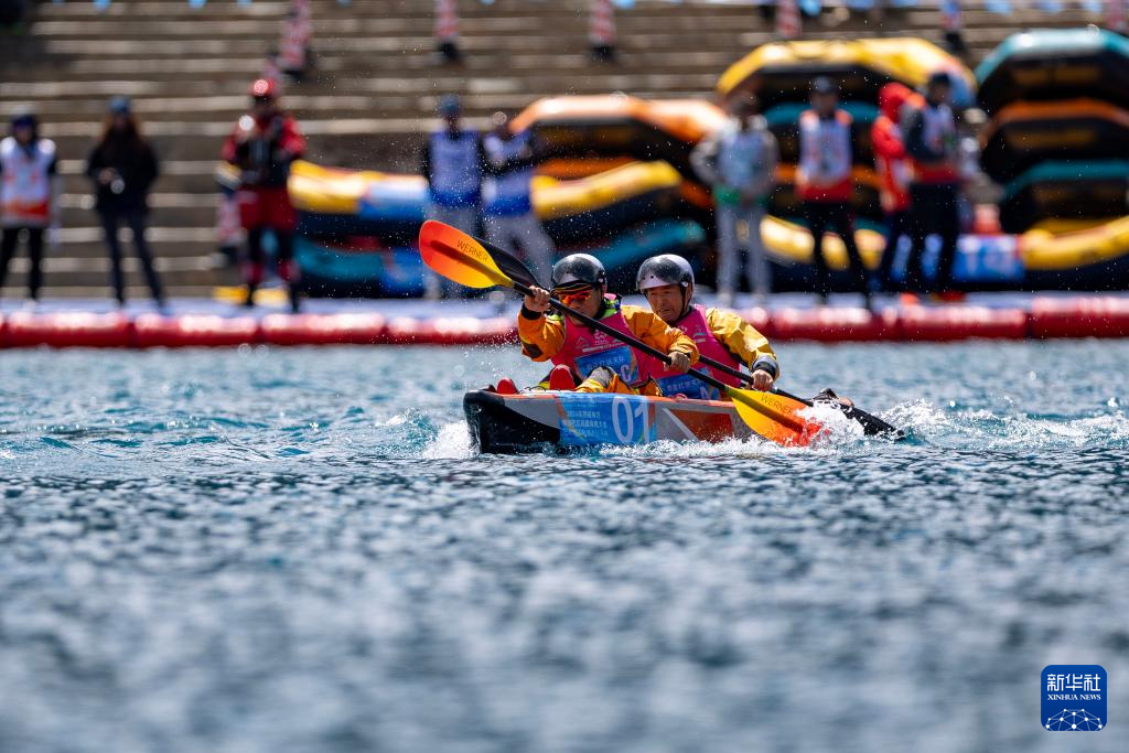 4月20日,選手們(men) 在兩(liang) 人漂流艇競速賽比賽中。新華社記者 孫非 攝