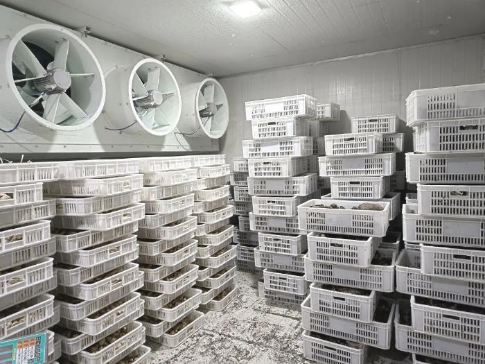 嘎托鎮擺放在倉(cang) 庫的鬆茸正在等待進一步加工處理