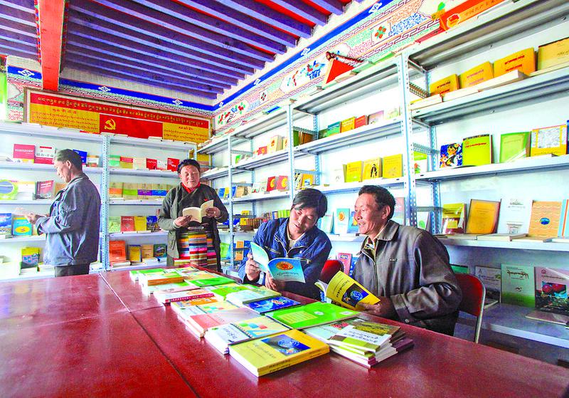 圖為(wei) 山南市浪卡子縣卡熱鄉(xiang) 群眾(zhong) 在農(nong) 家書(shu) 屋閱讀書(shu) 籍。記者 格桑吉美 攝