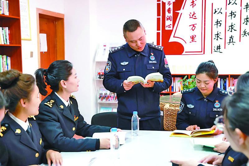 圖為(wei) 亞(ya) 東(dong) 邊檢站和亞(ya) 東(dong) 海關(guan) 聯合開展“書(shu) 香邊境”主題讀書(shu) 分享活動。記者 王莉 通訊員 許鵬飛 李錦輝 攝