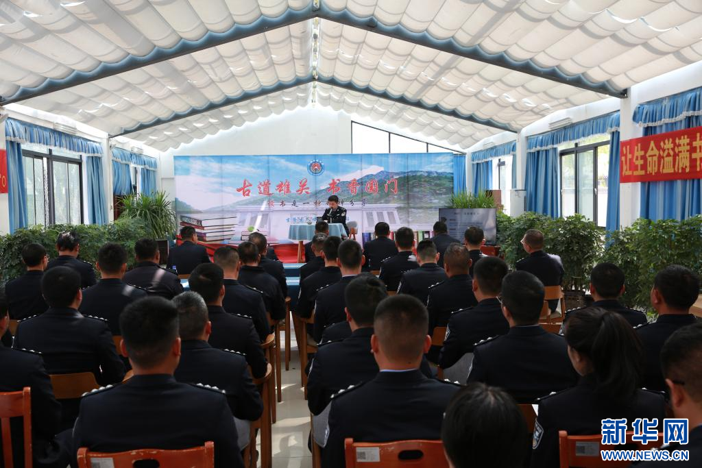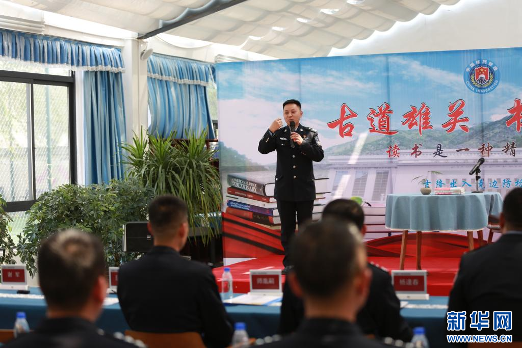 在“古道雄關(guan) 書(shu) 香國門”主題讀書(shu) 分享會(hui) 上分享者黃耀軍(jun) 正在向全站移民管理警察分享讀書(shu) 心得(4月19日攝)。肖富貴 攝