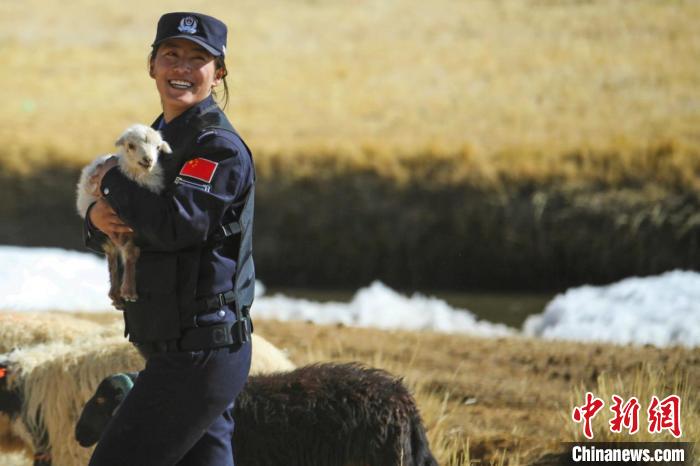 圖為(wei) 日土邊境派出所民警抱著牧民的羊羔一起轉場。任博 攝