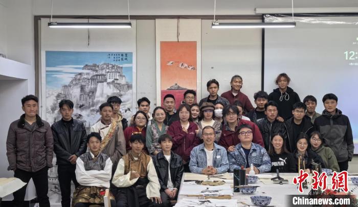 西藏大學藝術學院師生在《國畫寫(xie) 意》課程落幕後合影留念。西藏大學藝術學院供圖