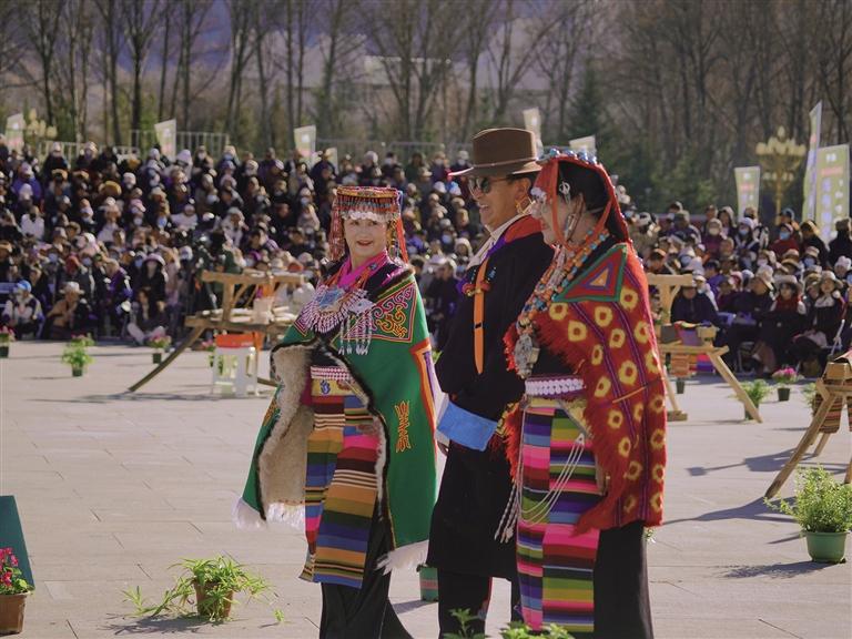 杭州西子湖畔,身著藏裝的演員與(yu) 當地群眾(zhong) 共舞;哈爾濱中央大街,演職人員身著藏裝推介日喀則旅遊……近幾年,西藏各市(地)文旅部門前往區外舉(ju) 行旅遊推介會(hui) ,除了帶去的西藏特產(chan) 、民族手工藝品……工作人員與(yu) 演職人員所穿的藏裝,也給區外群眾(zhong) 留下了深刻的印象,這讓西藏旅遊“熱”了起來,藏裝也跟著“火”了起來。