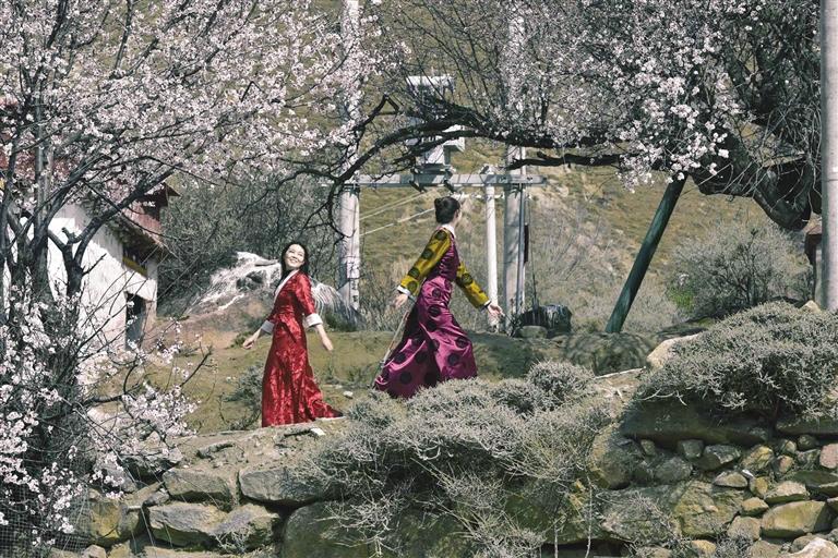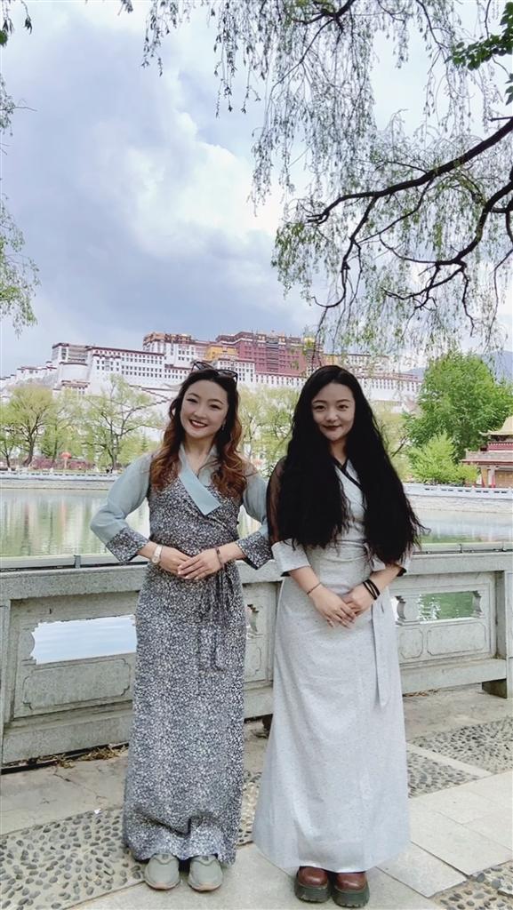 八廓街內(nei) ,布宮圍牆邊,帕崩崗桃花樹下……遊走在拉薩各個(ge) 景點,你會(hui) 發現眾(zhong) 多身著藏裝的漂亮姑娘,她們(men) 大多是來自全國各地的遊客。藏裝布料精美、顏色亮麗(li) ,樣式傳(chuan) 統或新穎,配上頭飾耳飾,衣香鬢影、搖曳生姿。她們(men) 穿著藏裝賞景、拍照留念,亦成為(wei) 別人眼中的風景。