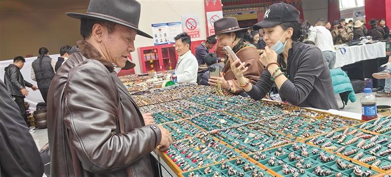 記者在展廳看到,參展商家攤位分布有序,前來購買(mai) 各種珠寶、藝術品的顧客絡繹不絕。活動現場,匯聚了來自全國各地的珠寶商、藝術家、收藏家及投資者。博覽會(hui) 期間,主辦方舉(ju) 辦了珠寶、藝術品鑒定評估等商貿活動,以及珠寶藝術品講座、研討會(hui) 等文化交流活動,為(wei) 與(yu) 會(hui) 者提供了一個(ge) 全麵了解西藏珠寶及藝術品的機會(hui) ,同時也為(wei) 珠寶商、藝術家和投資者搭建了一個(ge) 交流與(yu) 合作的平台。文/圖 記者 張雪芳
