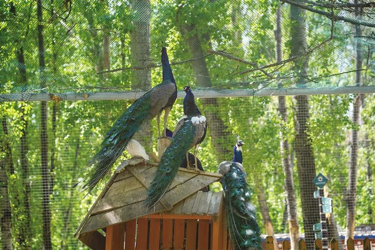 乘著觀光車前行,一路都被綠葉青草圍繞。觀賞完動物,記者一行在動物園內(nei) 的餐廳就餐,等待美食的過程中,點一杯咖啡或甜茶,看著藍天白雲(yun) 和滿眼綠意,不時還能聽到孔雀啼鳴,別有一番滋味。