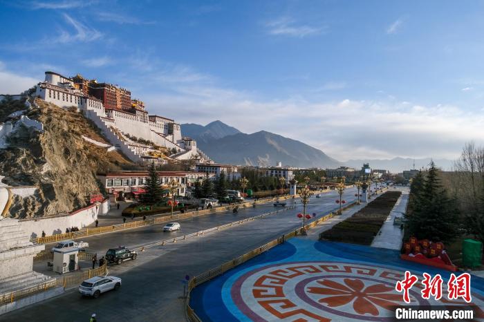 資料圖為(wei) 2024年1月1日,車輛途經布達拉宮。江飛波 攝