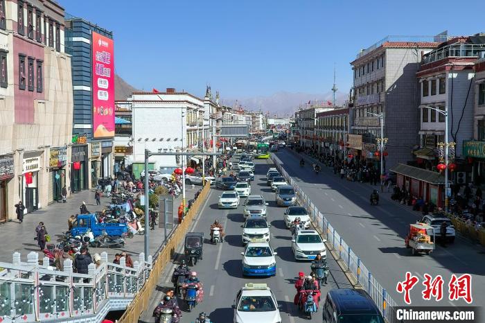 圖為(wei) 拉薩市北京東(dong) 路上的車輛。江飛波 攝