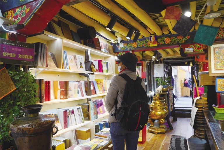 想在街邊的小店隨便逛逛?藏香店、氆氌店、羊毛卡墊店、藏裝店、各類唐卡店、書(shu) 店……隨便一家都是特色滿滿。