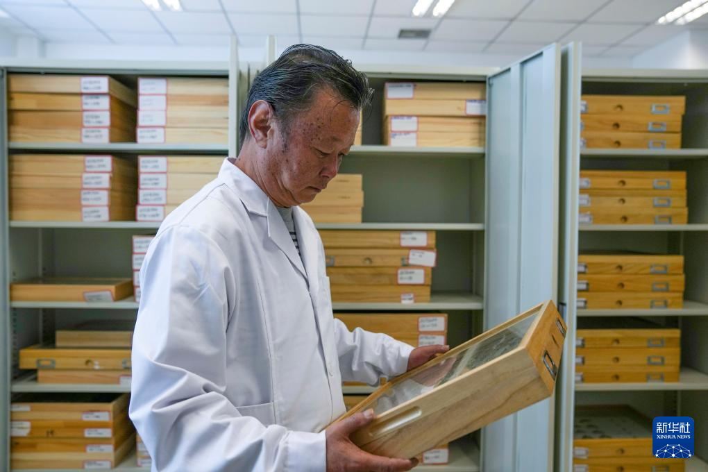 達娃在位於(yu) 拉薩的西藏自治區高原生物研究所檢視昆蟲標本(4月22日攝)。新華社記者 晉美多吉 攝