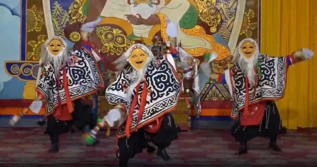 傳(chuan) 統藏戲的服裝從(cong) 頭到尾隻有一套,演員無需化妝,主要是戴麵具表演。整體(ti) 上看,藏戲分為(wei) 白麵具戲和藍麵具戲。在同一台藏戲中,又會(hui) 出現紅、白、藍、黑、黃等不同顏色麵具,代表不同身份。“比如藍色麵具代表獵人,黃色麵具代表高僧、官員等。”尼瑪次仁說。以戴黃色麵具為(wei) 主的紮西雪巴是白麵具藏戲的傑出代表。