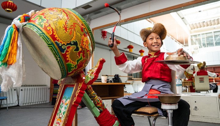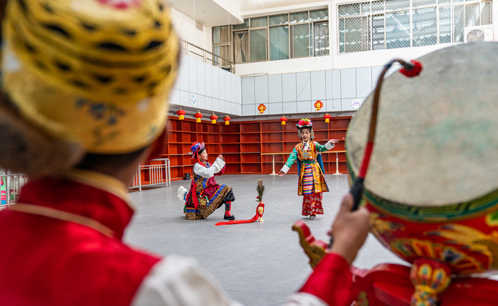 藏戲小演員為(wei) 表演伴奏。新華社記者 丁增尼達 攝