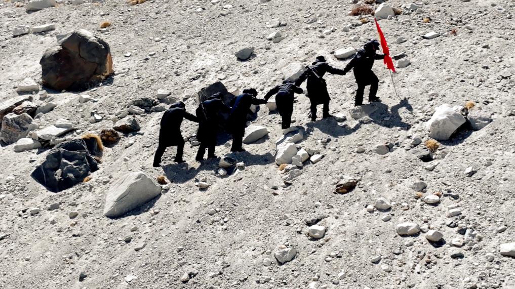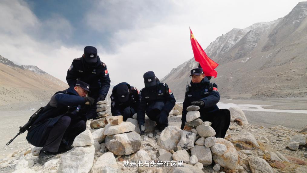 又經過4個(ge) 小時的跋涉,巡邏隊最終抵達本次巡邏的終點。每次到巡邏任務結束,都會(hui) 在這裏留下一個(ge) 小石頭,並許下一個(ge) 願望,祝祖國繁榮昌盛,也祝自己心想事成。