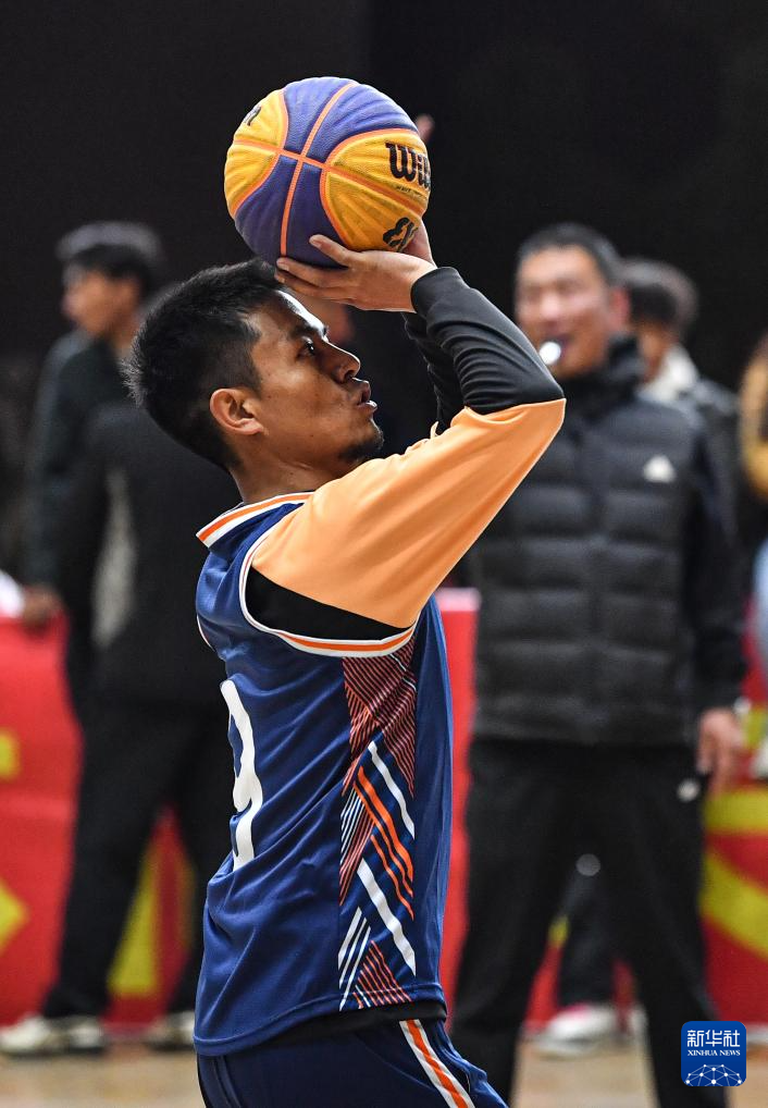 5月10日,西藏廣播電視台隊球員西熱多久在比賽中投籃。新華社記者 晉美多吉 攝