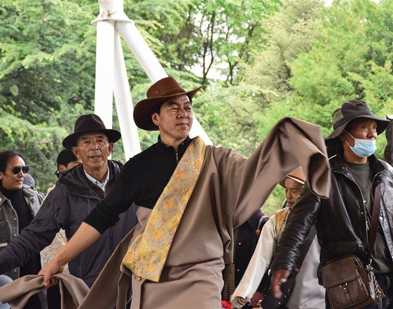 “能在杭州絲(si) 綢城街頭看到我們(men) 那曲的‘果卓’,一股自豪感從(cong) 心裏油然而生。”在浙江杭州讀研的旦增鬆繞說,鍋莊舞已然成為(wei) 大家了解西藏優(you) 秀傳(chuan) 統文化的一個(ge) 途徑,也因其親(qin) 民的舞蹈形式深受大家的喜愛。圍成一圈跳上一段鍋莊,沒過多久,人與(yu) 人的距離便近了起來。