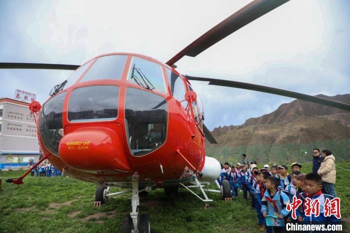 昌都市第二小學學生參觀救援直升機。昌都市森林消防支隊 供圖