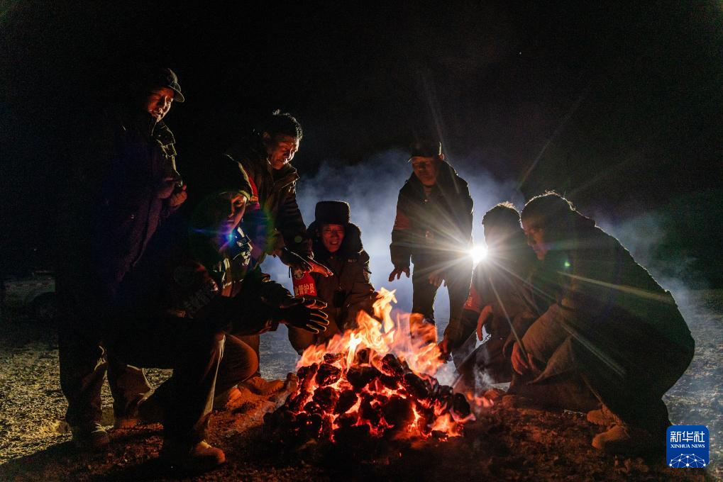 野生動物專(zhuan) 業(ye) 管護隊員在宿營地裏烤火,燃料是野犛牛的糞便(5月10日攝)。新華社記者 丁增尼達 攝