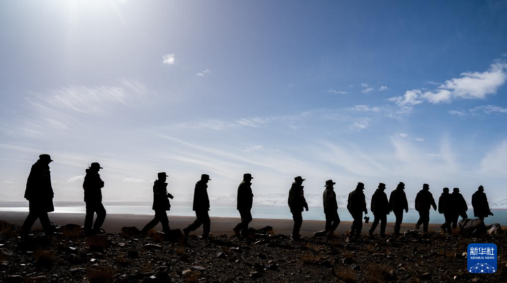 野生動物專(zhuan) 業(ye) 管護隊員在榮瑪鄉(xiang) 的依布茶卡湖邊巡護(5月7日攝)。新華社記者 丁增尼達 攝
