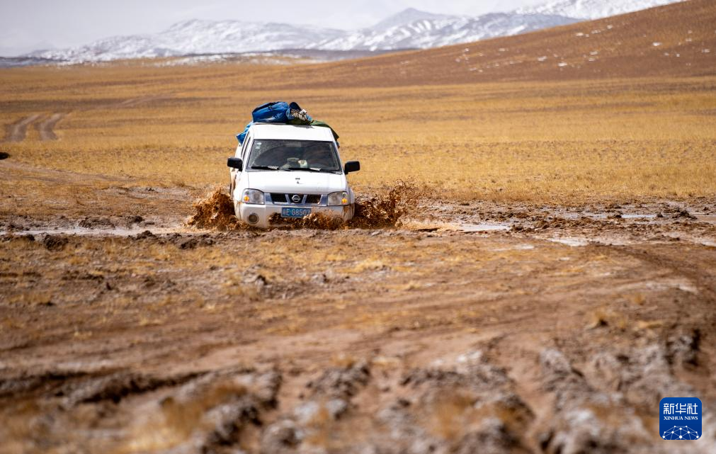 野生動物專(zhuan) 業(ye) 管護隊員的車子在巡護路上穿越泥濘路段(5月10日攝)。新華社記者 薑帆 攝