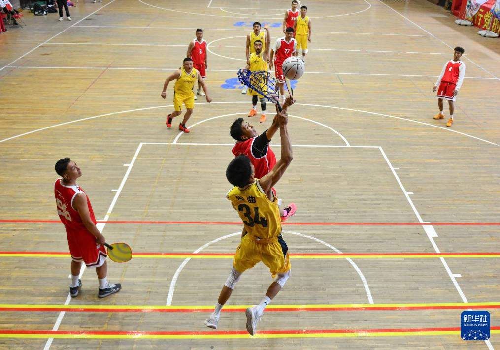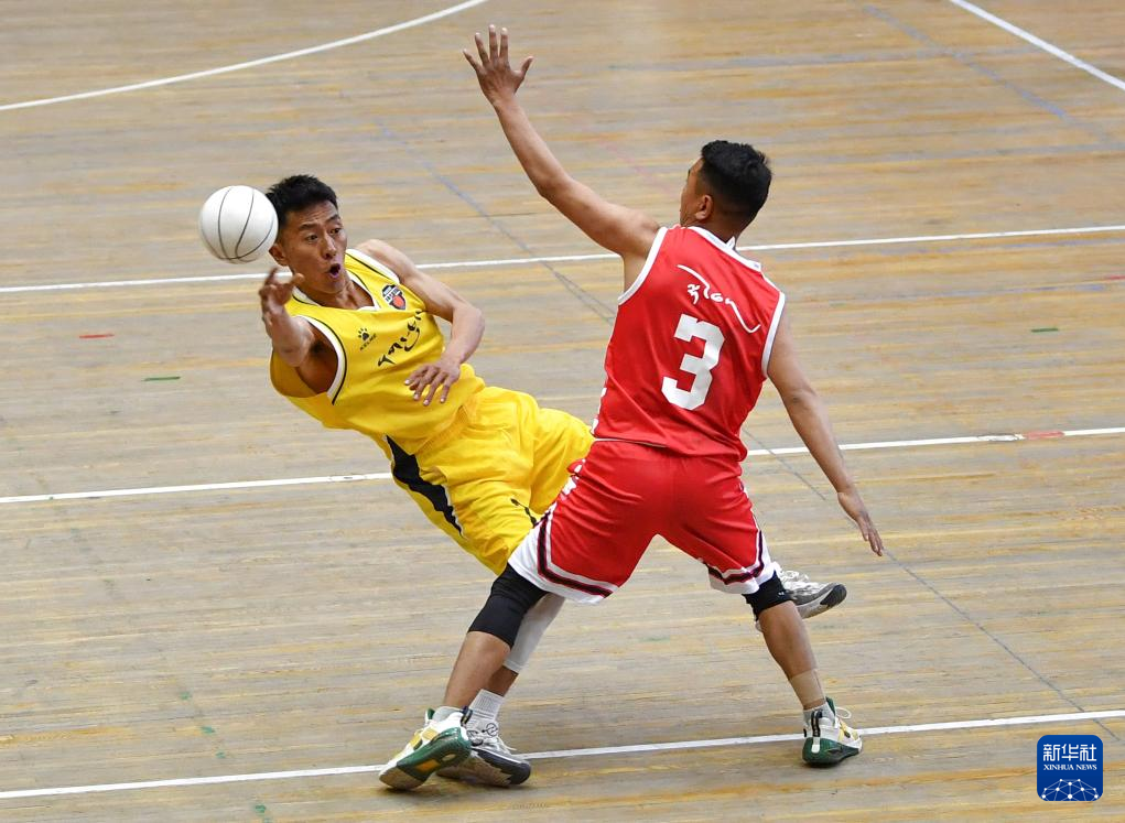 5月14日,山南隊江濤(左一)在比賽中得分。新華社記者 晉美多吉 攝