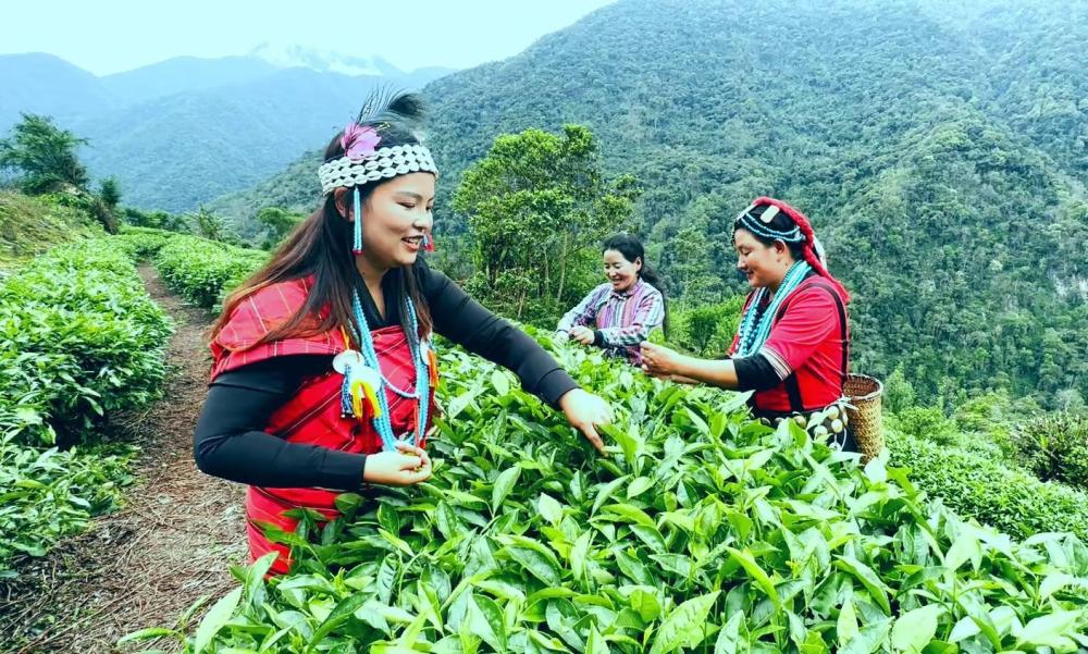 茶廠裏人頭攢動、歡聲笑語,珞巴族女子穿梭在茶樹之間,單手輕輕一旋,嫩葉飄然入簍,不一會(hui) 兒(er) ,簍裏已是一片青綠。